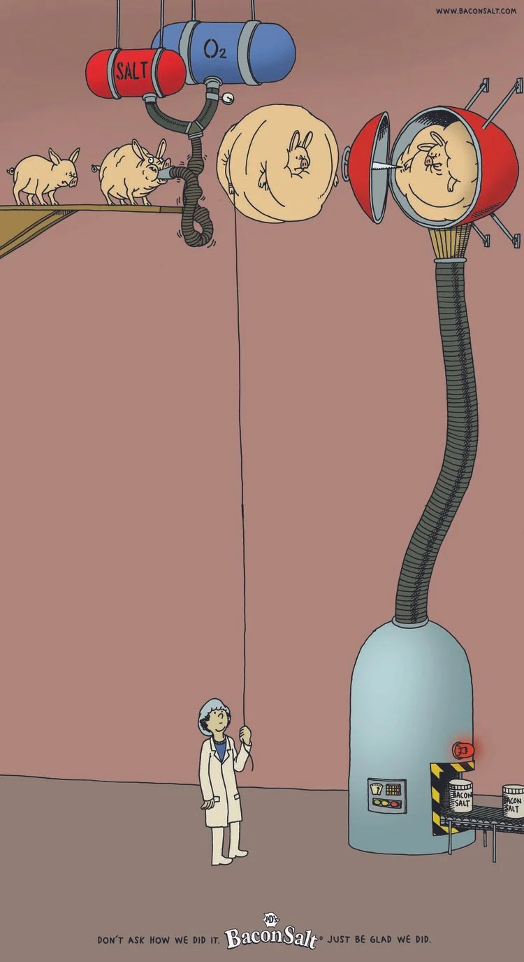 Bacon SaltBacon-flavored salt. The greatest invention of all time ever. Geico McDonald's Texas Health BMW Sierra Club Icehouse Beer TexasLending.com Tabasco Western Union JCPenny NHL Visionworks Bacon Salt First NBC Bank CompUSA Cellular one Dallas Morning News Dallas Men Against Abuse Old Glory Bank